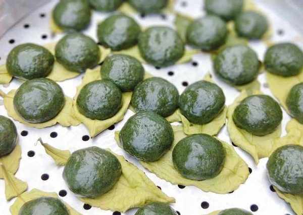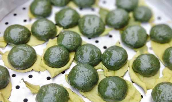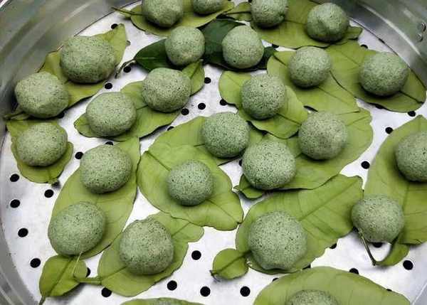 6、鍋內倒入適量清水,上蒸格,蒸至15分鐘即可,青團就制作好瞭