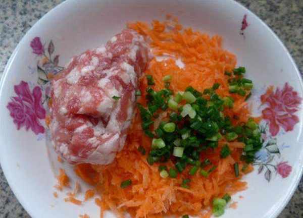 胡蘿卜肉末餡春卷的做法: