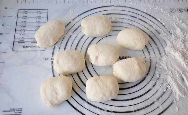 5取出面團後,將面團分割成八份,然後揉圓松弛10分鐘。您可以根據自己的模具來分割,或者直接造型,連模具都不用。