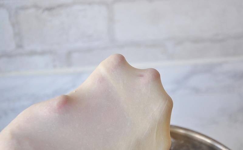 3或用手,或用面包機廚師機,把面團揉成光滑的面團,用手可扯出較薄的膜。香蕉的含水量也不一樣,所以一定要控制水量,預留一部分牛奶