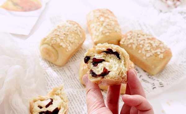 7將蔓越莓幹分別灑在面團上,從底部卷起。