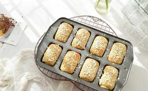 10請記得提前預熱烤箱,上火180,下火200度,烤約15-20分鐘。烤好後馬上脫模,涼透。打開看看,面包的組織也比較綿密有彈性。