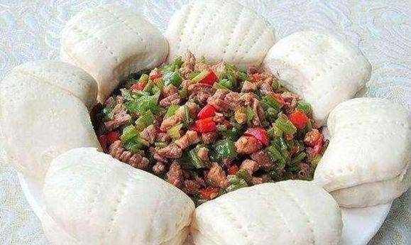 2、薑切末;青紅辣椒洗凈切丁;夾餅蒸熱。