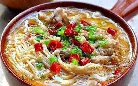 食材:金針菇400克、朝天椒適量、薑2片、蠔油1茶匙、醋2茶匙醬油1/2茶匙、辣椒油2茶匙、香油1茶匙、食鹽1/2茶匙、蒜3瓣、蔥1段、雞粉少許。