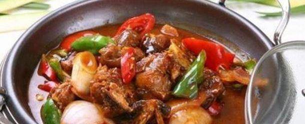 食材:排骨500克、苦瓜1個、土豆2個、茄子1個、洋蔥0.5個、甜椒1個、玉米油300克、料酒2勺、胡椒粉1勺、鹽2勺、幹辣椒8個、花椒1勺、幹鍋底料300克