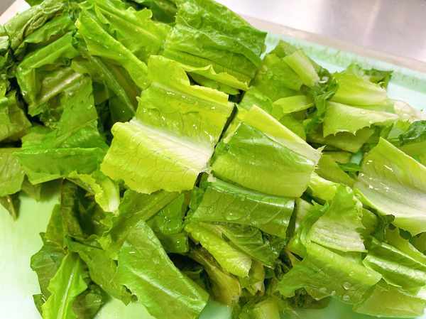 1、 油麥菜摘好葉子,清洗幹凈,切成自己喜歡的大小。