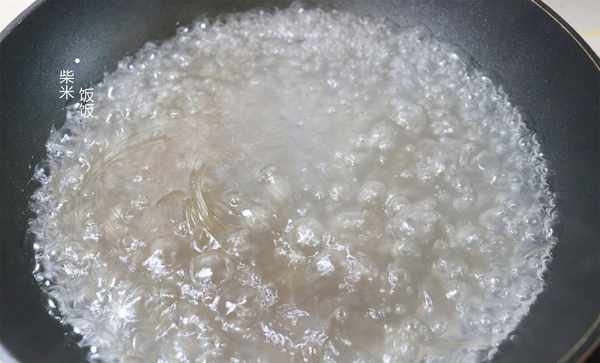 3,燒一鍋開水,放入幹的紅薯粉條,中小火煮7~8分鐘,煮至粉條沒有硬心。