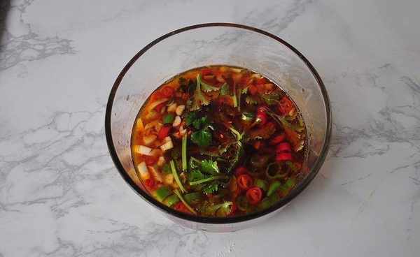 4然後將醋、生抽、糖、芝麻油、辣椒油,香菜放在碗中,再加點涼開水或純凈水調勻。您也可根據自己的喜好,添加辣椒油或者增加香醋的用量,讓口味更豐富。如果覺得味淡,還可以放點鹽。