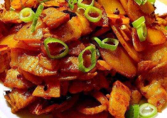 烹飪小技巧:1、土豆片和五花肉一定要切的越薄越好,這樣出來的土豆片,吃起來是幹脆的,五花肉咬起來也是非常有嚼勁的