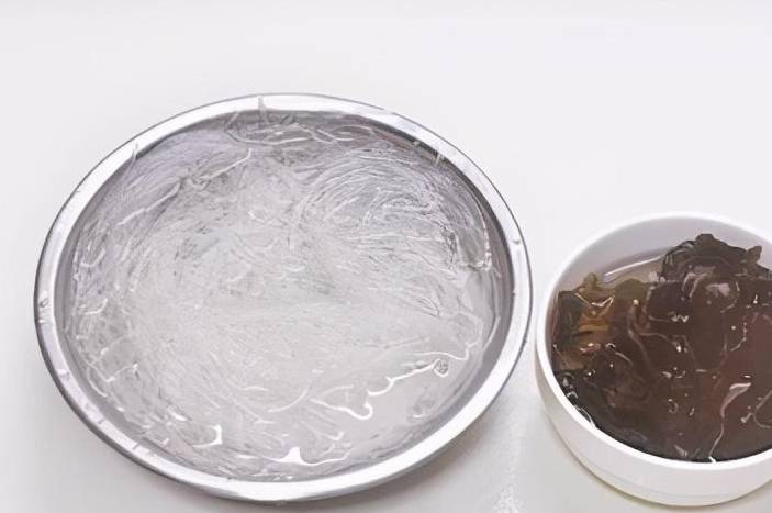 1所有原料洗凈。木耳和粉絲分別用涼水泡發,粉絲泡軟後剪短。