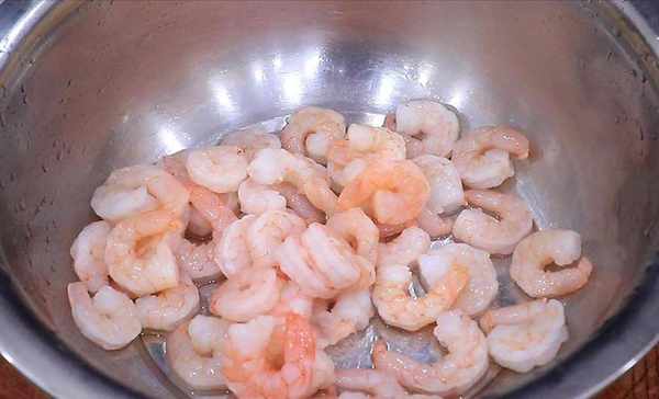 2.燒半鍋開水,放入豌豆,淋入一點植物油鎖住營養,汆煮1分鐘左右,豌豆斷生以後放入蝦仁繼續煮20秒鐘,倒出來用清水沖洗過涼,蝦仁不能久煮,不然鮮味容易流失,吃著不夠嫩。