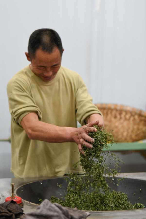 在名山,完成茶葉到“甘露”的蛻變,各傢有自己的“秘技”,但大部分都要經過萎凋、殺青、揉捻、貼鍋、塑型、烘幹、提香等步驟。
