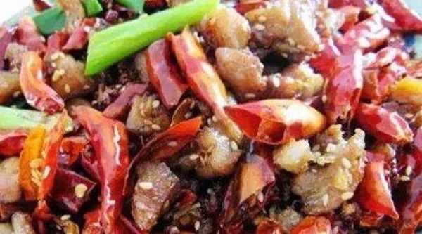 3.盛出備用。清鍋後放少許底油,小火將花椒、紅幹椒節煸香。放入薑、蒜炒出香味。放入炸好的雞丁翻炒均勻。