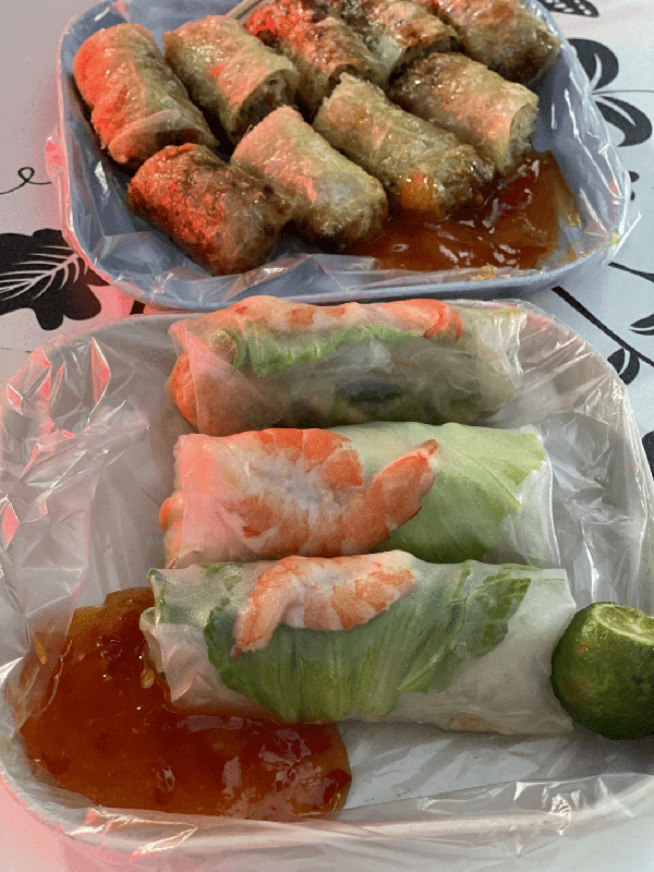 越南米紙卷就是透明的皮包著蝦的那個,裡面是貨真價實包有蝦的,不過要記得跟老板說要蝦多的,不然老板會默認給你蝦少的。