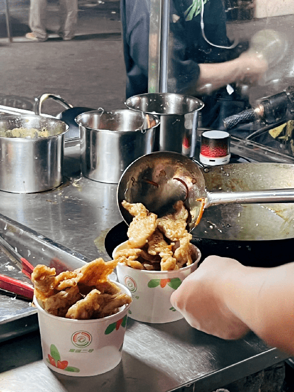 這是平西夜市裡新來的流動攤點瞭,每天去的人都很多,到瞭八九點人多的時候,鍋包肉的攤點都會被排隊的人圍起來。