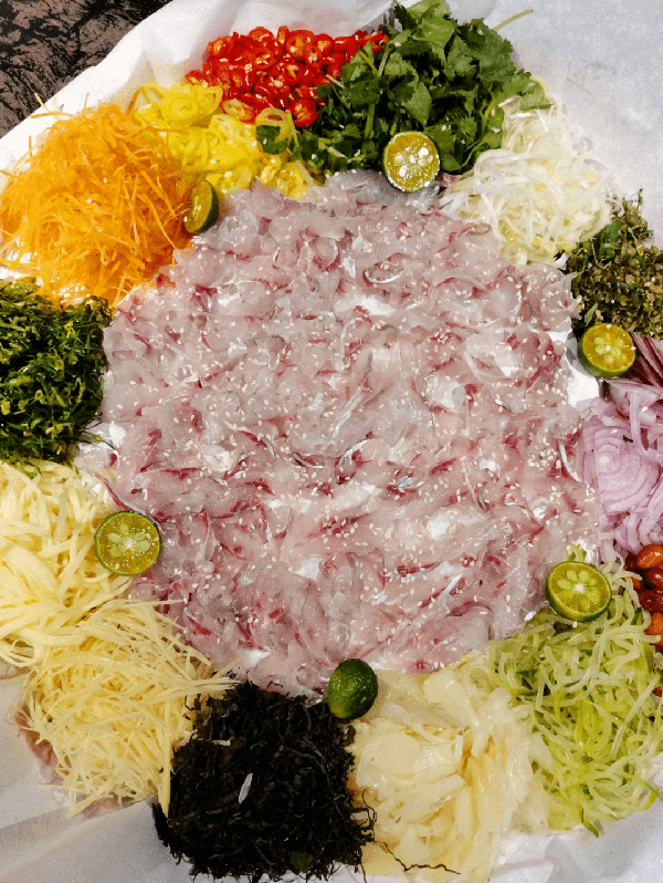 這傢魚生店的擺盤讓就算平時不愛吃魚生的人都想嘗試一下,外面擺上一圈五顏六色的配菜,中間擺上切好的處理好的魚生,點綴上芝麻和青檸檬,讓人食指大動。