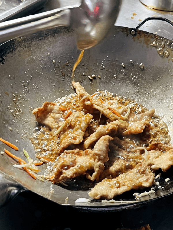 鍋包肉給的量很足,肉也很新鮮,每一塊鍋包肉都是現炸的,炸的過程和炒的過程都是客人能夠看到的,老板在炸的時候,為瞭保證鍋包肉的口感,也會多過幾次油,不會偷懶。