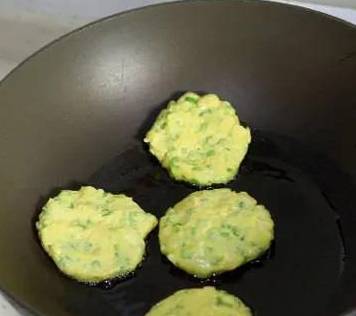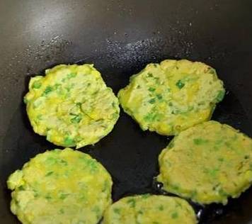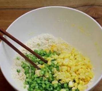 韭菜80克、玉米粒180克、面粉100克、玉米粉100克、雞蛋2個、鹽適量、油少量