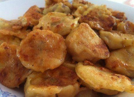 第五步,煎至香蕉的一面呈現金黃狀態的時候,翻面繼續煎制,直至香蕉的兩面都變金黃,就可以盛出開吃瞭。