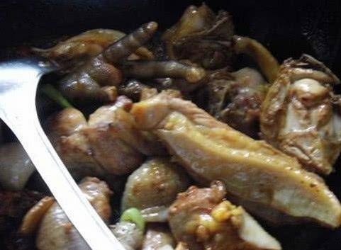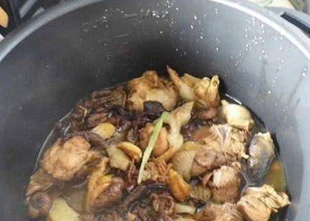 第七步,轉入電壓力鍋中,調至燉雞鍵,直至雞肉酥爛的時候,將湯汁收濃,便可盛出開吃