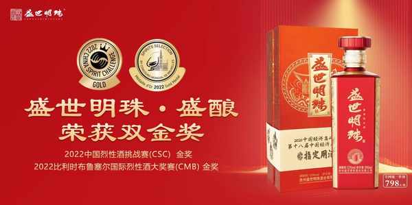 以盛釀為代表的盛世明珠匠心佳釀,2022年榮獲世界和國內烈性酒大賽的雙金獎,強勢綻放,成就消費者高品質健康生活。