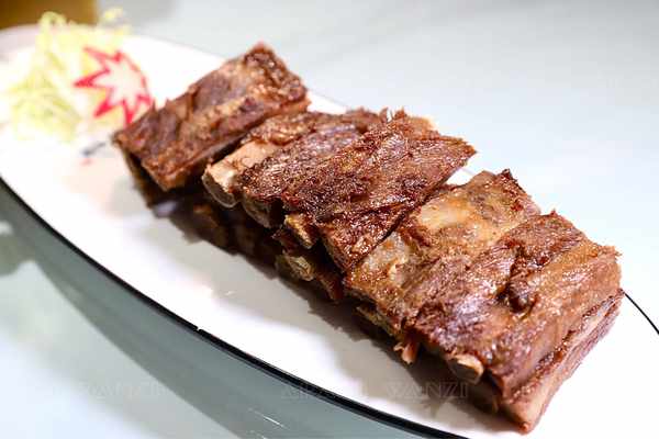四川醬排骨,選取最好的豬仔排部位,配以秘制醬醃制而成。入口咸中帶甜,醬香濃鬱,酥爛脫骨,滋味醇厚,亦是一道值得一試的餐前涼菜。
