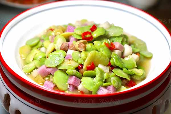 彩椒肉沫蠶豆煲,色澤青翠,春天的氣息撲面而來。
