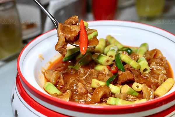 綠筍燒牛腩,牛肉酥爛味美,搭配綠筍清爽解膩,肉香四溢,鍋底湯汁用來拌飯堪稱一絕。