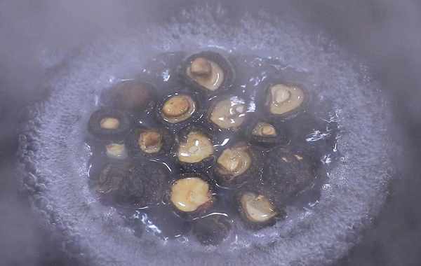 2.把香菇開水放入鍋中,焯燙30秒鐘,去除上面的雜質和異味,倒出來用清水沖洗幹凈,瀝水備用。