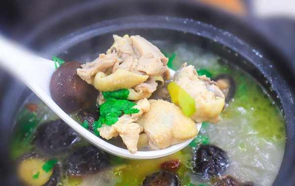6.50分鐘以後把香菇放進去,加入適量的食鹽調底味,放入幾粒枸杞或者紅棗,蓋上鍋蓋再燜5分鐘,讓香菇的鮮味融入到雞湯裡面,撒點香菜或者蔥花,美味即成。