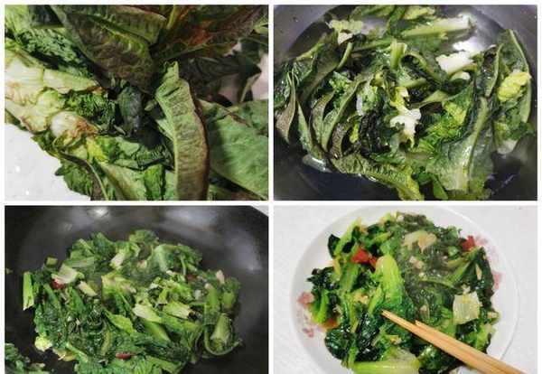 4,萵苣葉炒出水分後,加入一點蠔油,胡椒粉,鹽,再翻炒一分鐘左右就可以出鍋瞭。