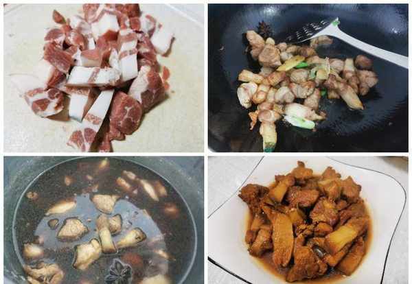 4,肉炒至入味後,加入適量的水,料酒,冰糖,然後蓋上鍋蓋燉二十分鐘左右,最後大火收汁,加鹽調味就可以出鍋瞭。