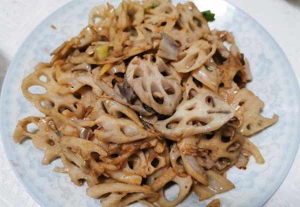 3,藕片炒熟之後,加鹽調味,最後加鹽調味,然後再淋一點香醋就可以出鍋瞭。