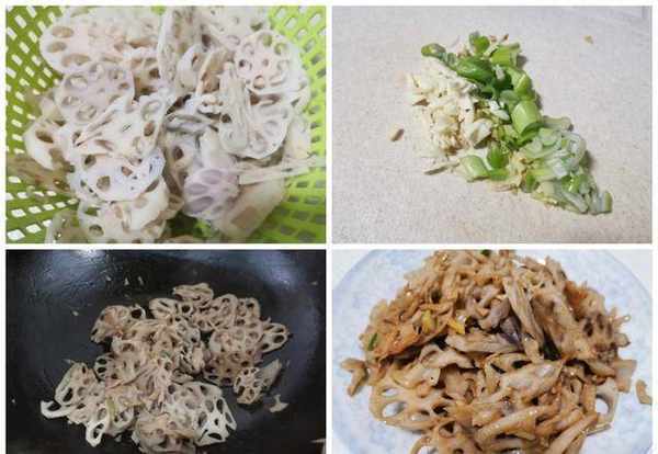 2,起鍋燒油,油熱之後,放入蔥薑蒜爆香,然後把藕片下鍋煸炒幾下,接著加入胡椒粉,生抽翻炒均勻。