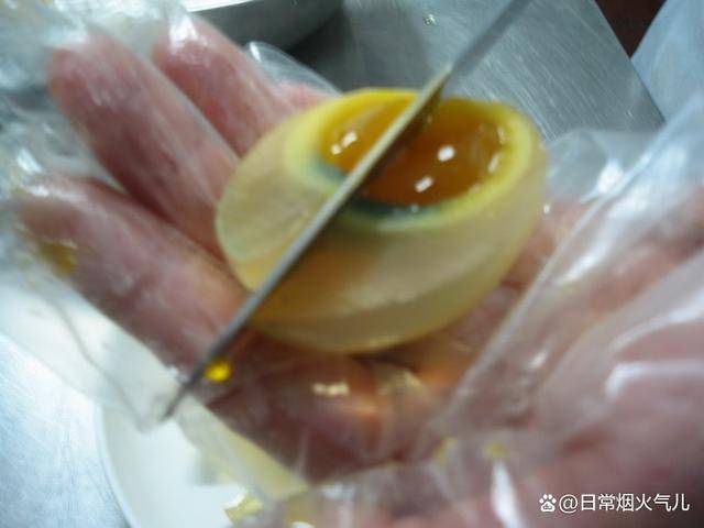 劃皮蛋時要註意刀功均勻,一個切成6半