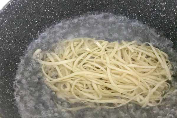 步驟2大火,鍋裡燒水,水開後放入面條,煮熟。