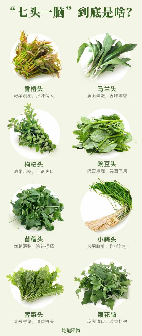 春芽新蔬、田間野菜,每年都會準時占領江蘇人的餐桌。其中“頂流野菜”有八種,人稱“七頭一腦” 。聽著像七個葫蘆娃與葫蘆小金剛齊聚,這些春天新發的野菜的細嫩“頭頭”,可愛著呢——