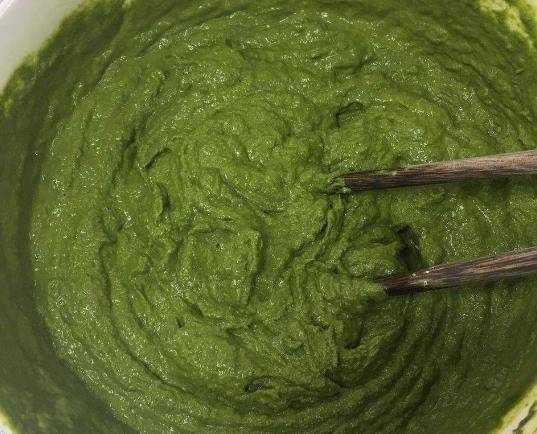 步驟二:然後把艾草放入破壁機中,打成細膩的艾草汁,盛出備用。