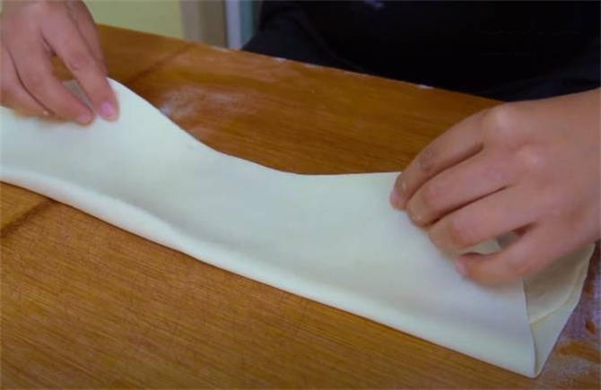 5.抹勻瞭之後咱們把餅皮疊起來。