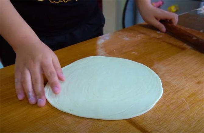 11.直接按扁瞭,正反兩面換著搟,搟成餅皮。