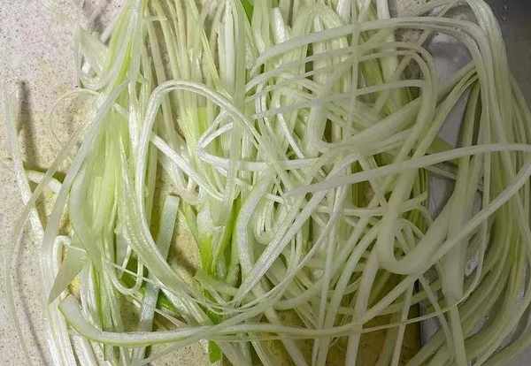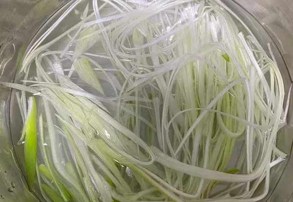 2.容器加入清水,放入切好的蔥絲浸泡10分鐘。