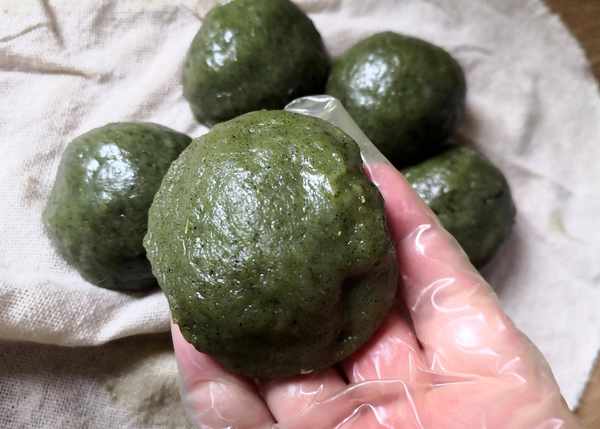 8、關於裹保鮮膜:可以有效防止青團保存時開裂,而且更容易拿取,建議使用耐高溫的保鮮膜,方便後續再次加熱。當然介意的夥伴,也可以蒸的時候去掉保鮮膜。