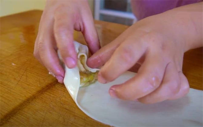 6.把兩端收口的地方給它捏緊瞭,像這樣直接向下按扁,這個胚子就做好瞭。