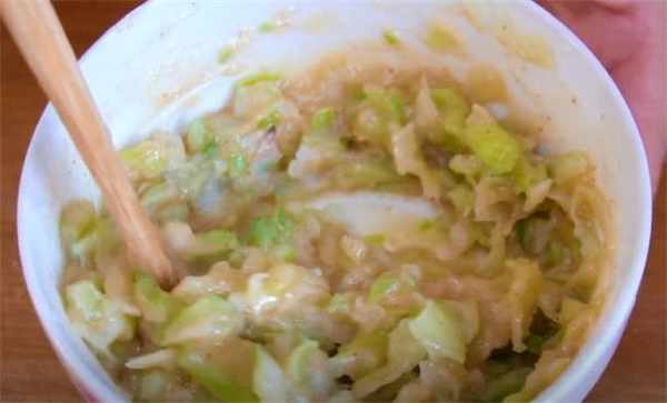 2.這個時間做點油酥,面粉裡面加點鹽,再來點五香粉,抓一把蔥花,把油燒到微熱,倒在蔥花上面,用筷子攪勻,這個就是油酥瞭。