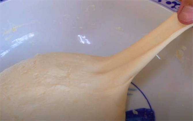 3.再來看一下我們餳的面,這個面一拉很長,說明餳得特別好。
