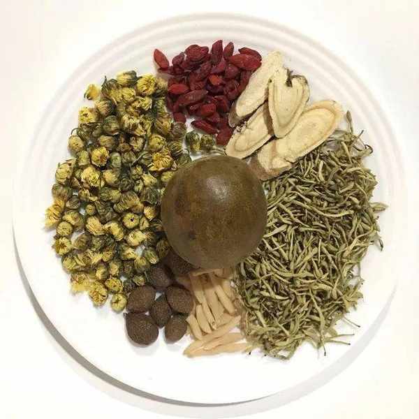 龜板、土茯苓 、生地黃、蒲公英、金銀花、菊花等。