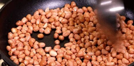 ④想要花生米酥脆不發黑,炒制的過程中需要用中小火慢炒4-5分鐘,千萬別心急開大火快速翻炒哦~