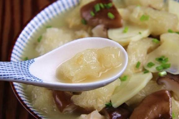 豬蹄筋是豬在屠宰時所剖取的新鮮蹄筋,然後再經曬幹之後再經過油發而成的。買回傢泡軟後就可以搭配一些食材一起烹飪,口感軟糯又有彈性,是我們偏愛的一種食材。豬蹄筋含有豐富的膠原蛋白,有美容之功效,有健胃、強筋壯骨療效,也是營養滋補佳品。冬筍肉質鮮嫩,是一種低糖和低脂肪的食材,它含有大量的植物纖維,能促進人體內垃圾和毒素的排出,同時也能分解人體內的多餘脂肪,經常食用能減肥瘦身!香菇含有豐富的膳食纖維,可以促進腸胃的蠕動,幫助身體清除垃圾,而且香菇的熱量也比較低,經常食用能夠健身強體,使得身體更加的健康。詳細做法請往下看;需要的食材;幹蹄筋35克冬筍200克香菇80克雞湯半碗鹽3克水淀粉2湯匙蔥花少許備好全部食材