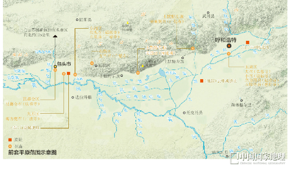 風沙肆虐的鄂爾多斯高原與蒼涼的陰山之間,鑲嵌著塞外的一處重要農耕區,著名的前套平原,也叫土默川平原。土默川平原上縱橫著黃河造就的“海子”(湖泊)以及引黃灌溉工程的一條條灌渠,保證瞭農耕和放牧所需水源。