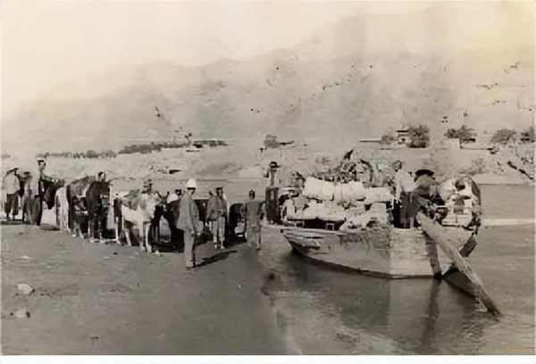 在寧夏中衛至吳忠的黃河岸邊,從事擺渡和沿河交易的回族商人的老照片